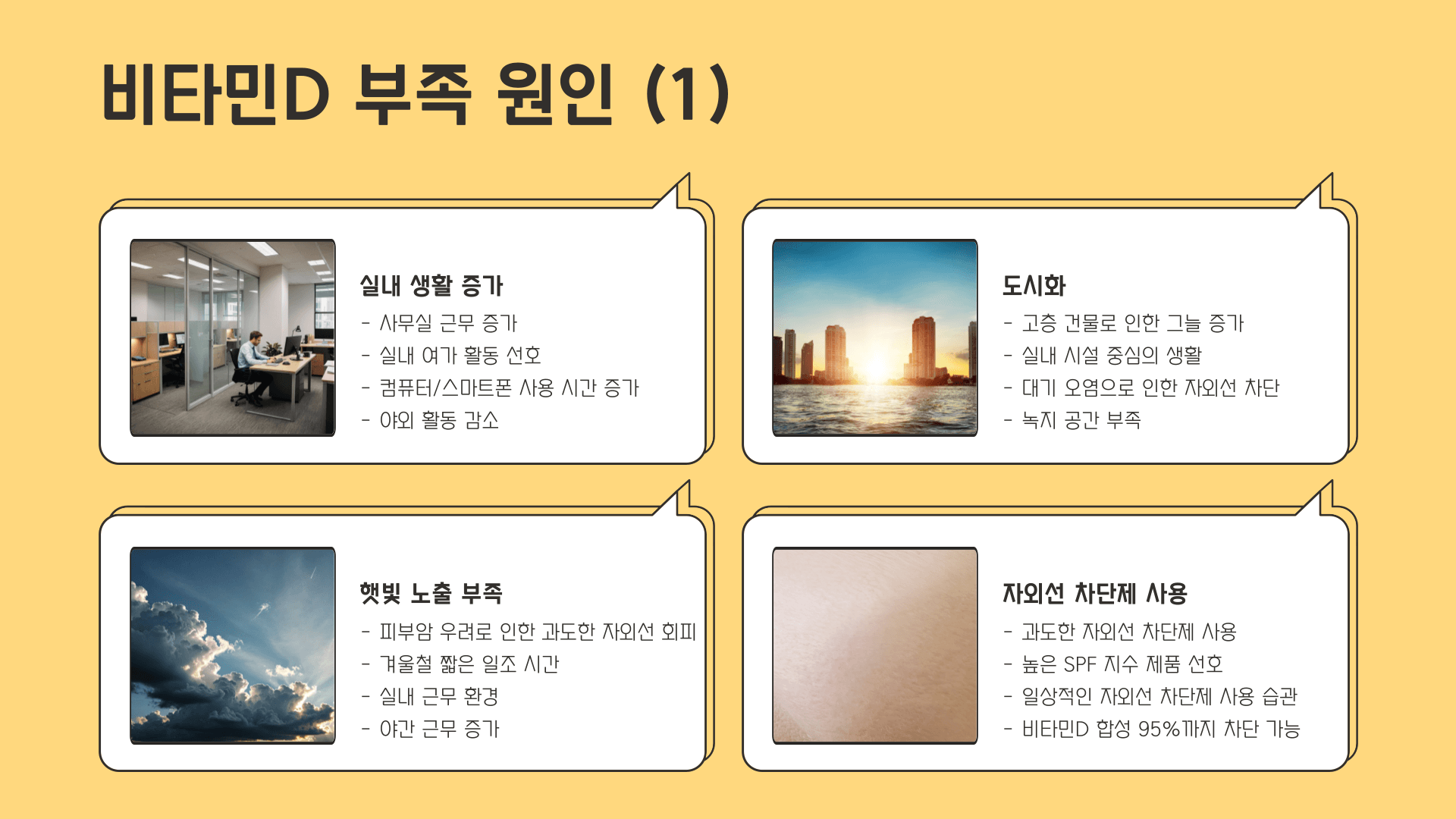 실내 생활의 증가와 도시화에 따른 햇빛노출 부족