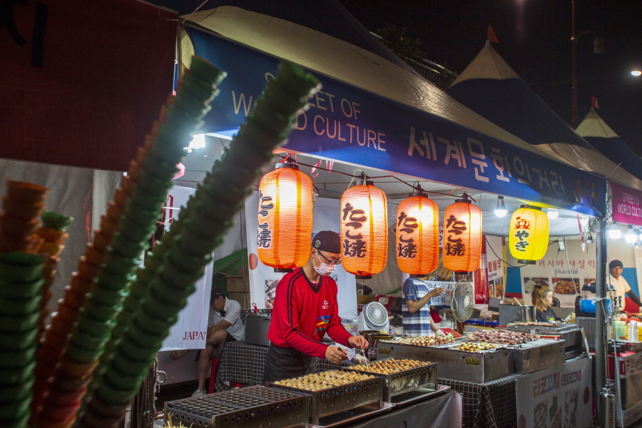 Visitors can try on colorful hanbok and walk around the festival grounds while taking photos. Wearing traditional Korean clothing creates lasting memories for many foreigners.