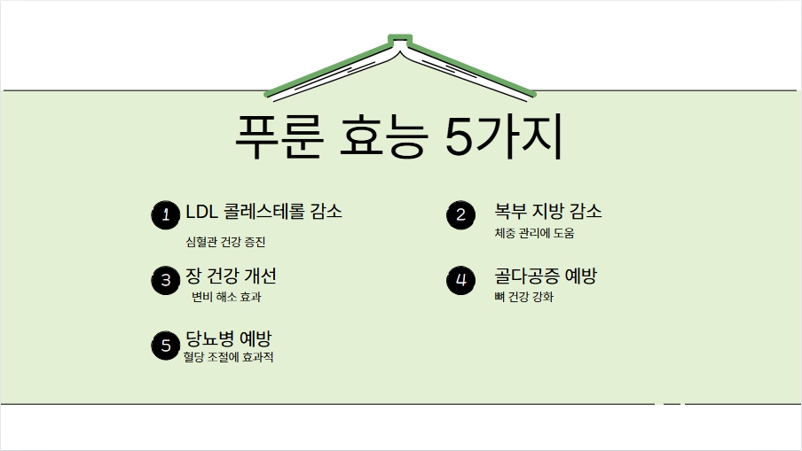 LDL 콜레스테롤 감소 효과: 푸룬에 풍부하게 함유된 식이섬유는 콜레스테롤 수치를 개선하는 데 효과적입니다. 캘리포니아 푸룬 협회에 따르면, 푸룬은 포화지방 함량이 낮고 식이섬유가 풍부하여 콜레스테롤 수치 개선에 긍정적인 영향을 미칠 수 있다고 합니다.